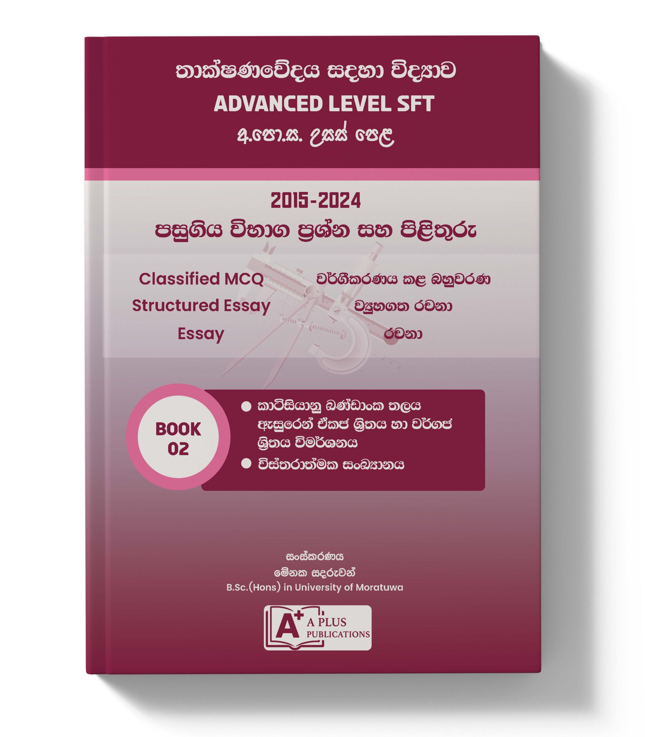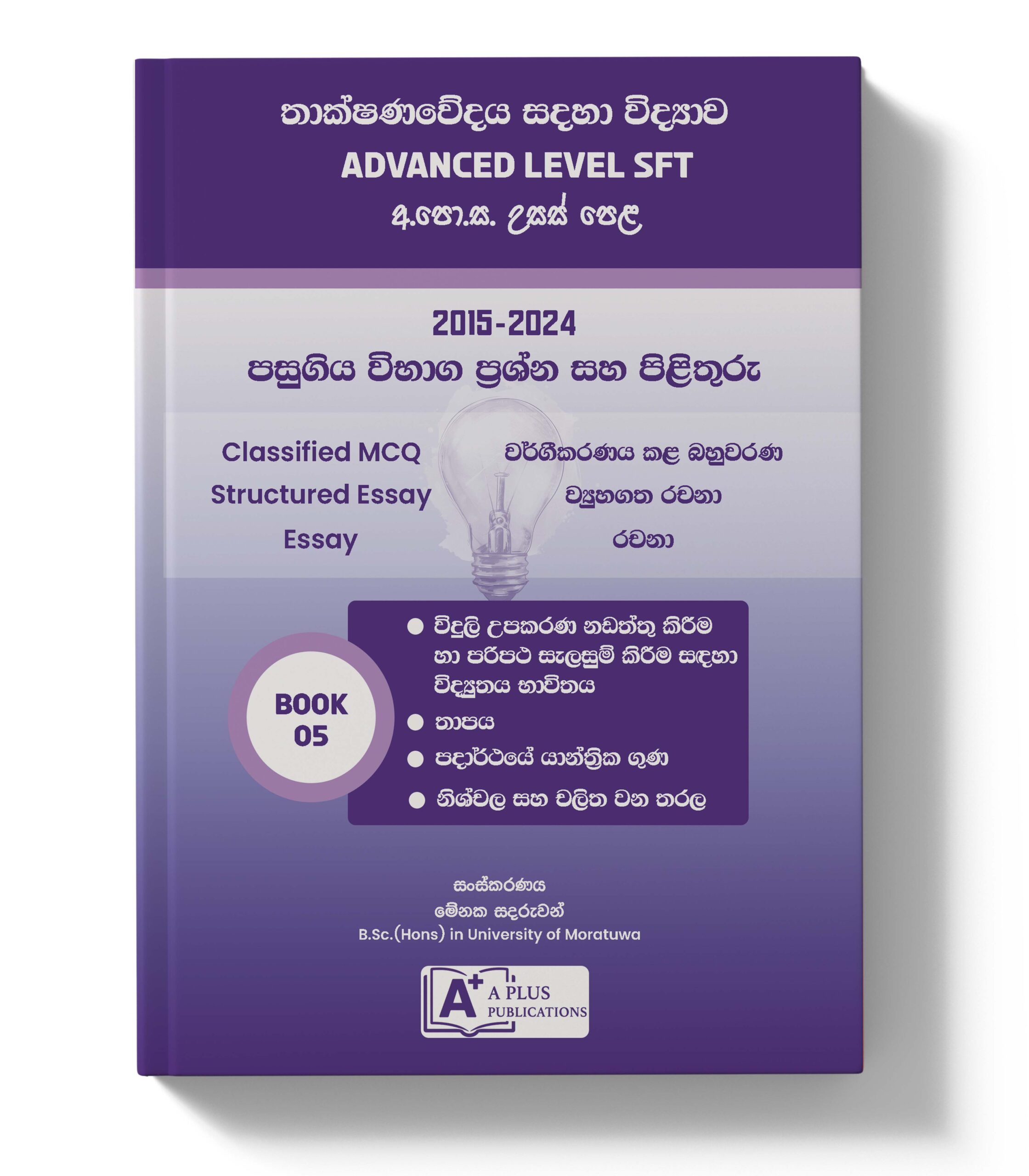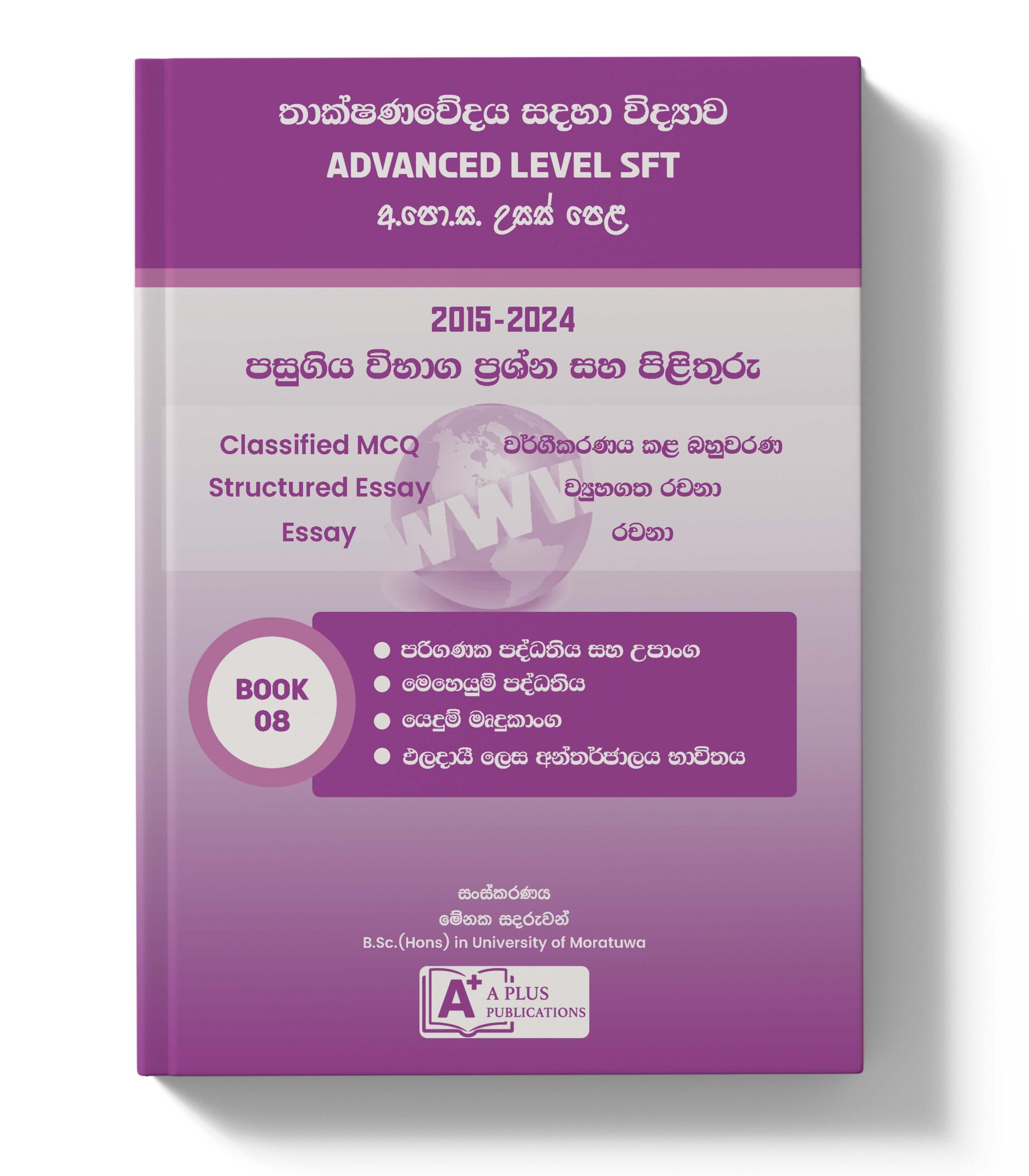 AL SFT විෂය හදාරන සියලුම දරුවන්ට A+ වෙතින් නව විෂය නිර්දේශය අනුව වෙන් කර සකස් කර ඇති පසුගිය විභාග ප්රශ්න සහ පිළිතුරු පොත් කට්ටලය.