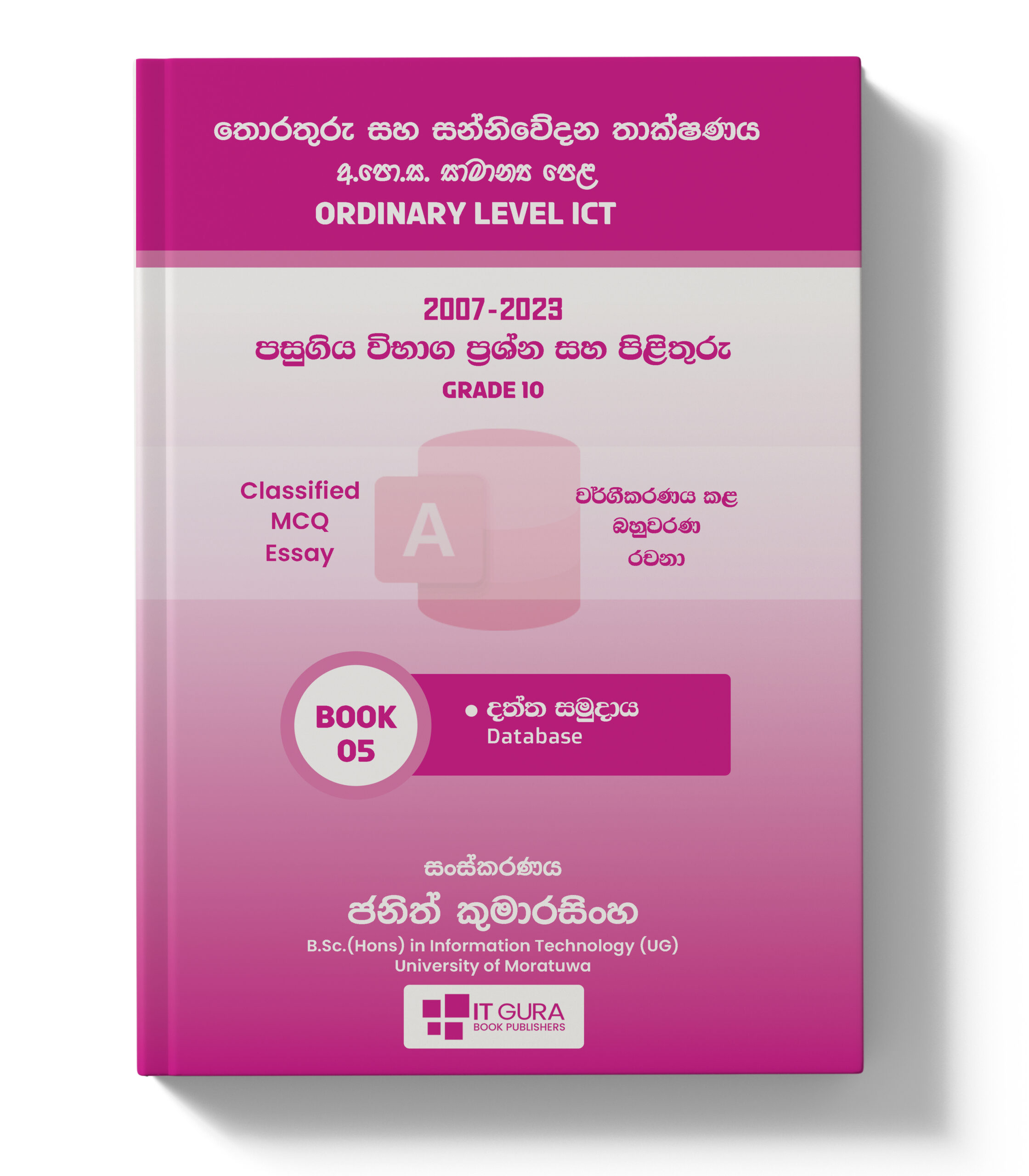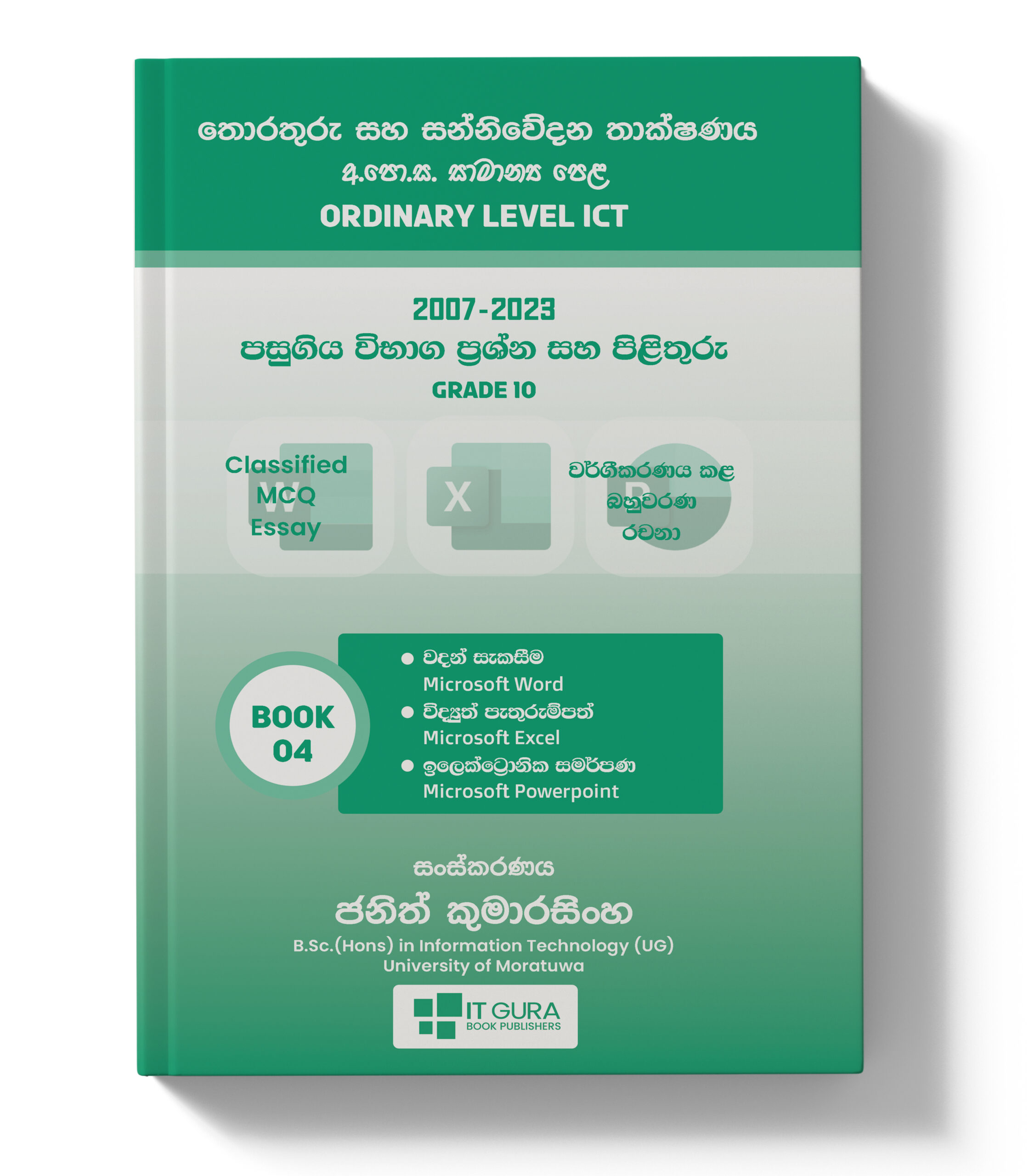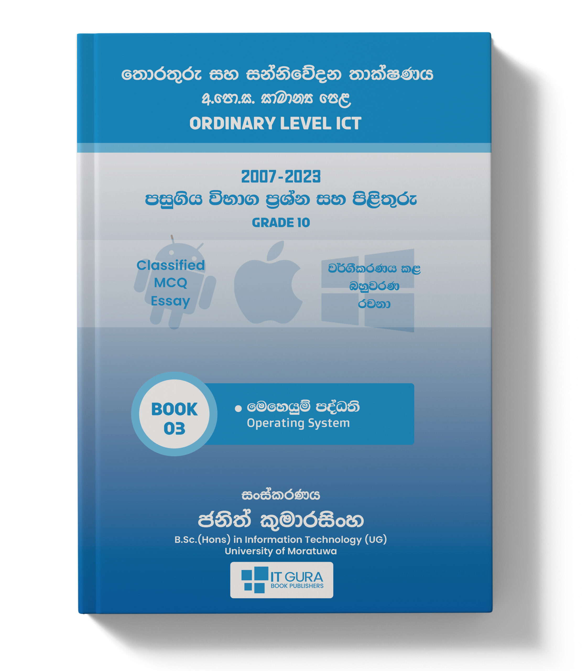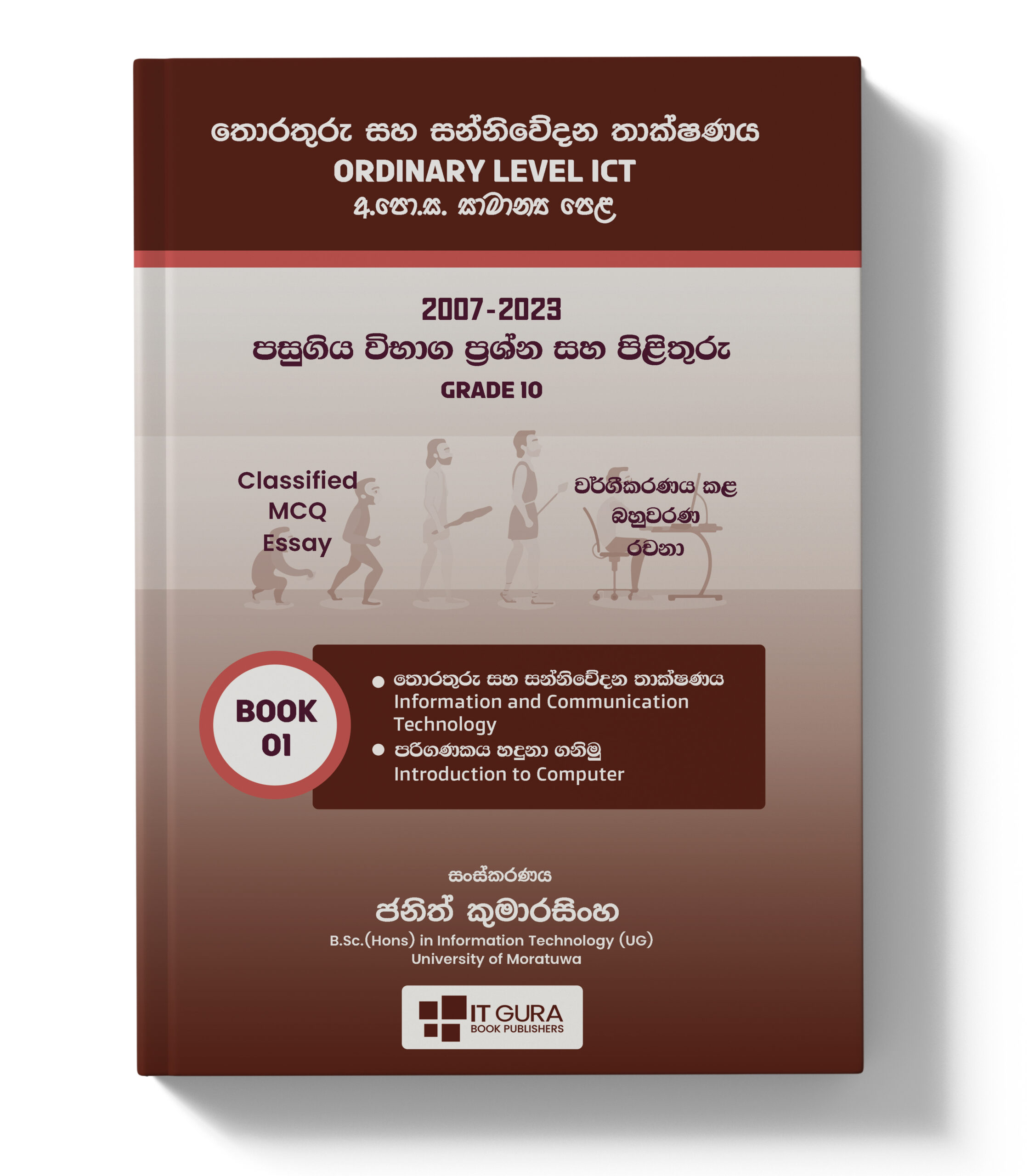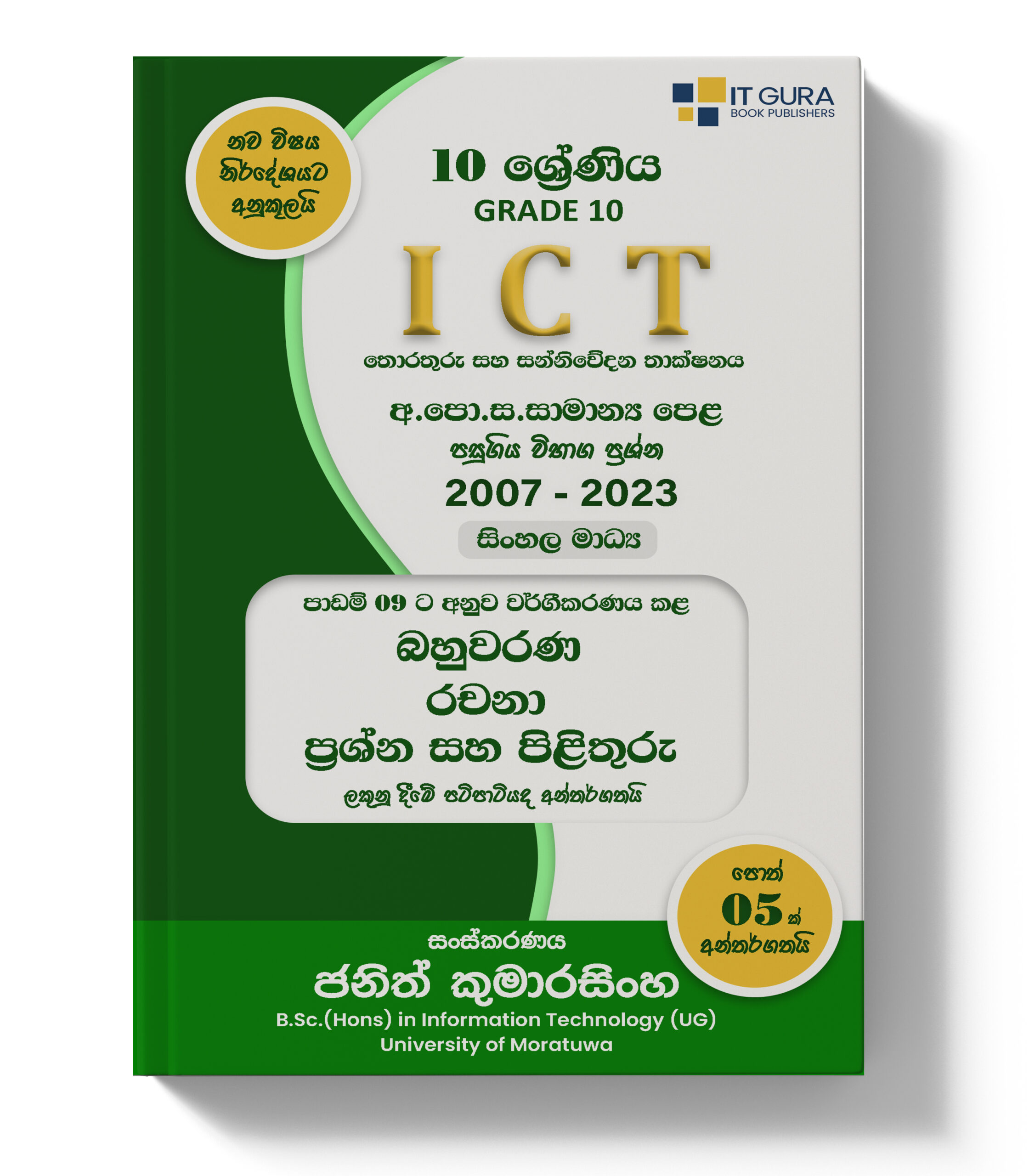 OL ICT විෂය හදාරන 10 ශ්රේණිය දරුවන්ට IT GURA වෙතින් නව විෂය නිර්දේශය අනුව සකස් කර ඇති පසුගිය විභාග ප්රශ්න සහ පිළිතුරු ඇතුළත් පොත් කට්ටලය දැන් මිලදී ගත හැක.